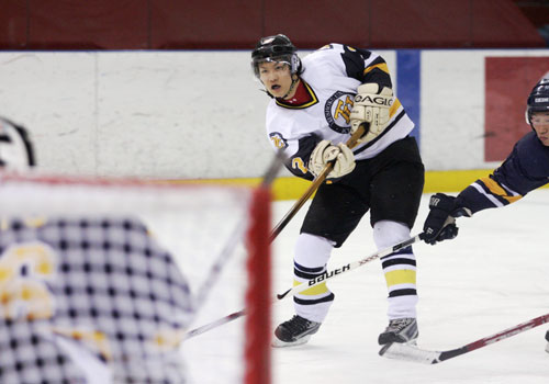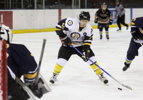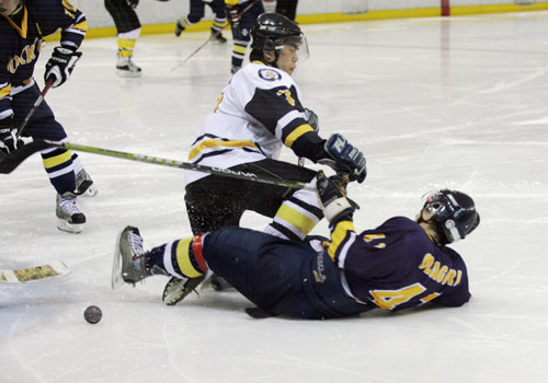 第3ピリオド8分、飯田がブルーライン付近で持ち上がろうと