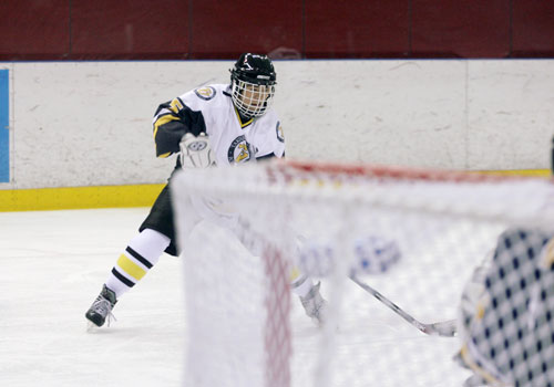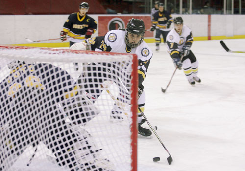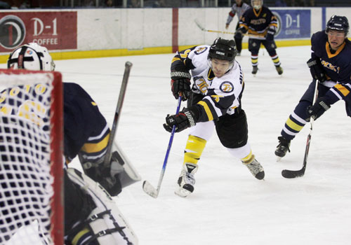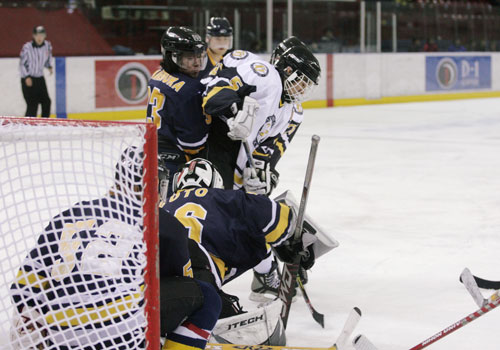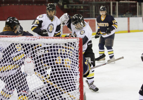 第3ピリオド1分、自陣ゴール前にスロットショットが