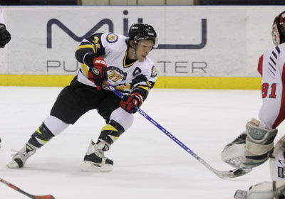 第一ピリオド#12 佐藤 が終了間際の 14:56 に先制点を決めます。