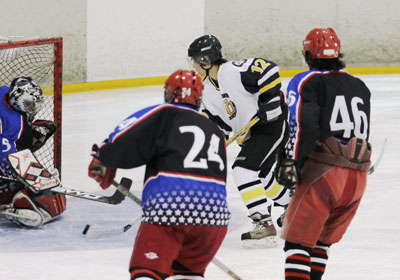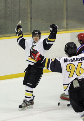 8:17 に混戦の中から失点しますが、直後のパワープレーチャンスの中、10:48 に #2 鈴木 がパワープレーゴールでリードを広げ直します。