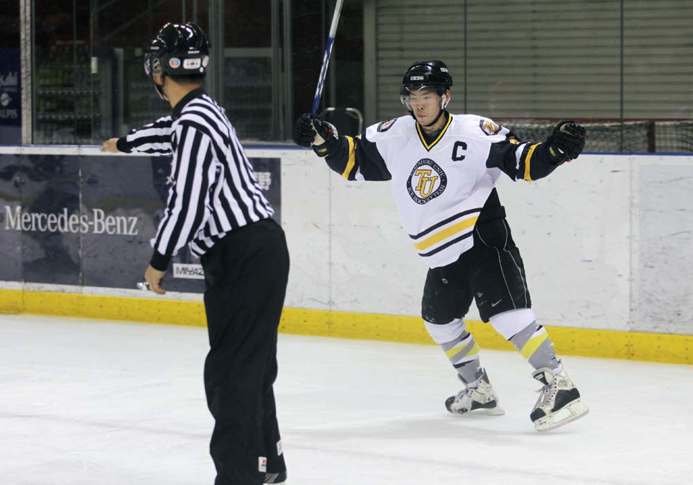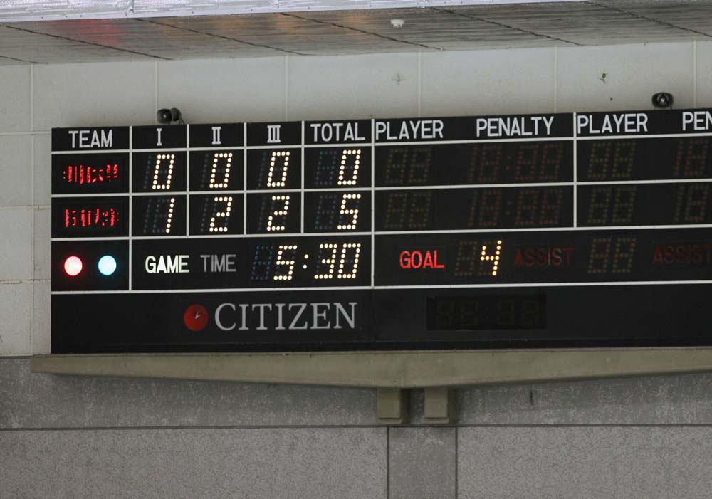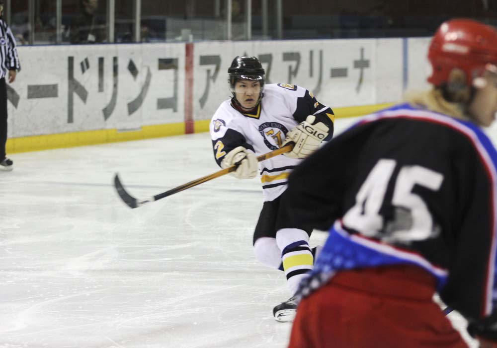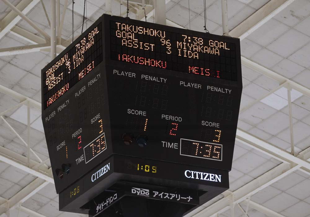 第3ピリオド9分30秒、飯田雄樹のスコアーで拓大5点目