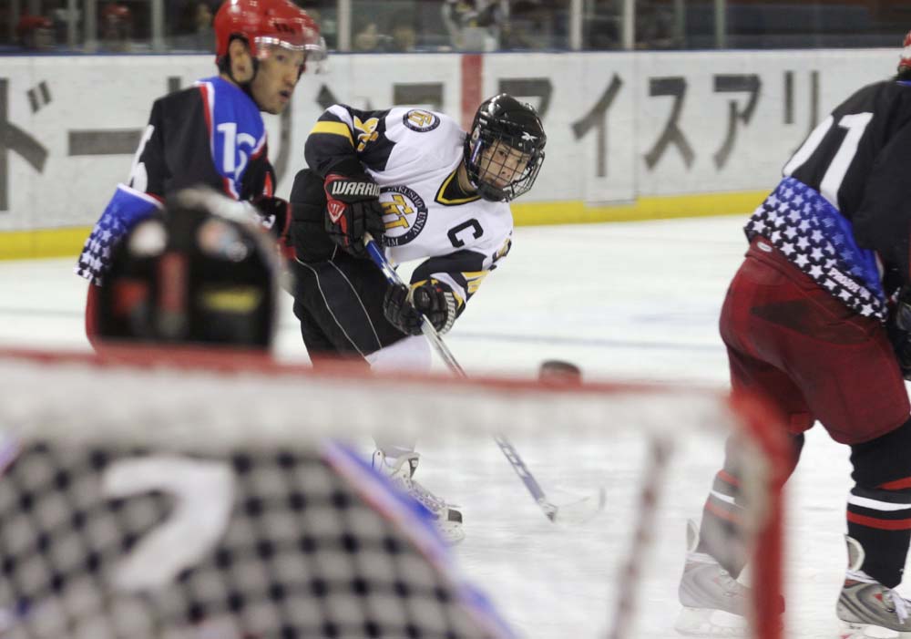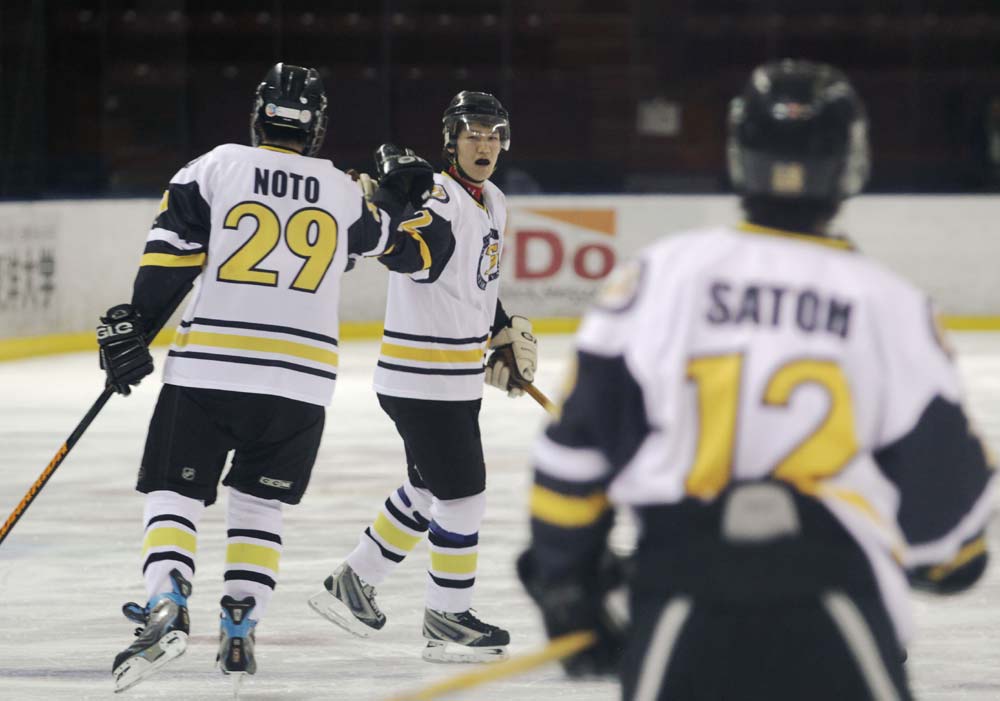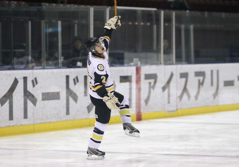 第3ピリオド10分、#96宮川が相手陣内でパックを奪い、ゴール正面からバックハンドでシュートを決める